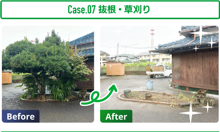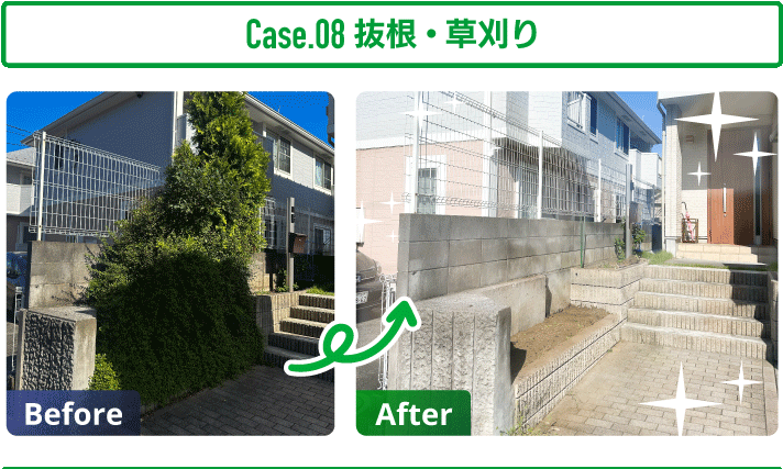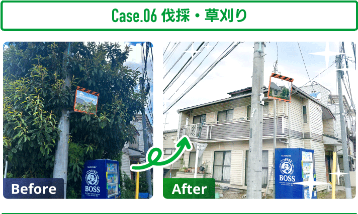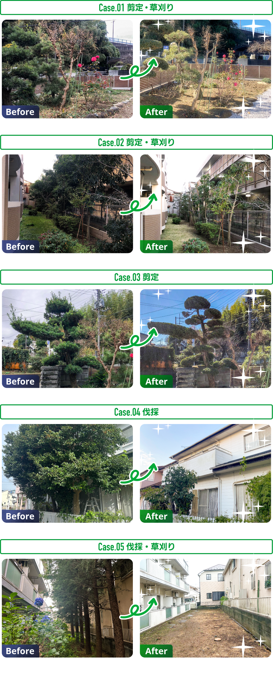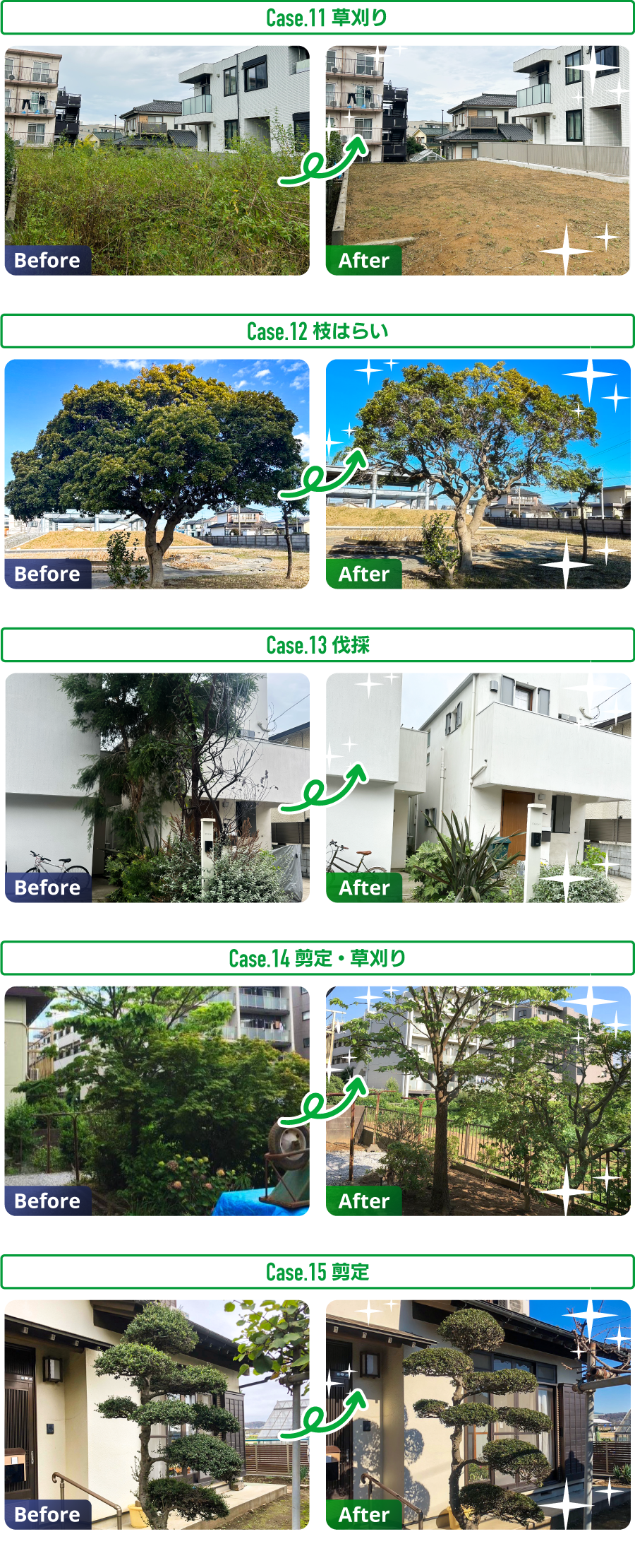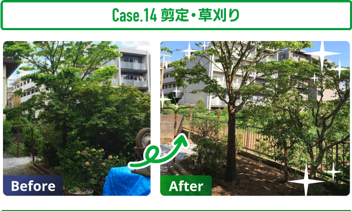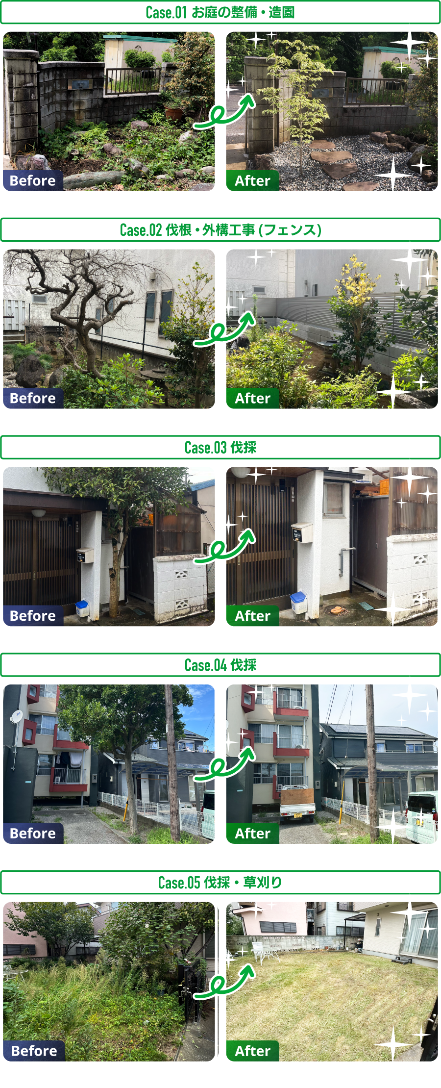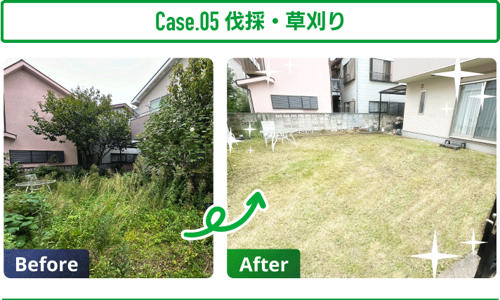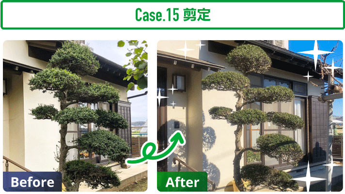 スタッフの方は危険がないよう細かいところまで気を配り、あっという間に作業を終えてくださったのが印象的です。伐採後の片付けまできれいにしていただき、庭が見違えるほどスッキリしました。また何かあればお願いしたいです。 -