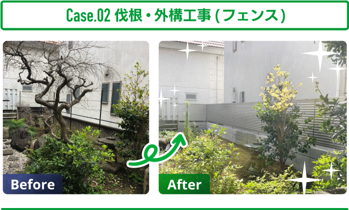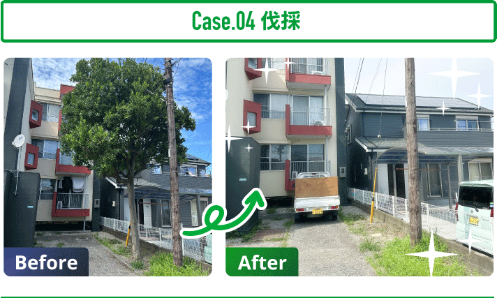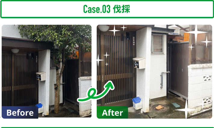 庭に大きく育ちすぎた木があり、自分たちではどうにもできず伐採をお願いしました。