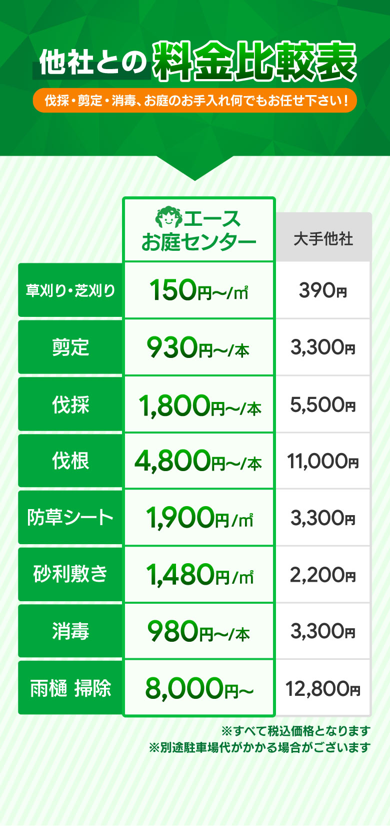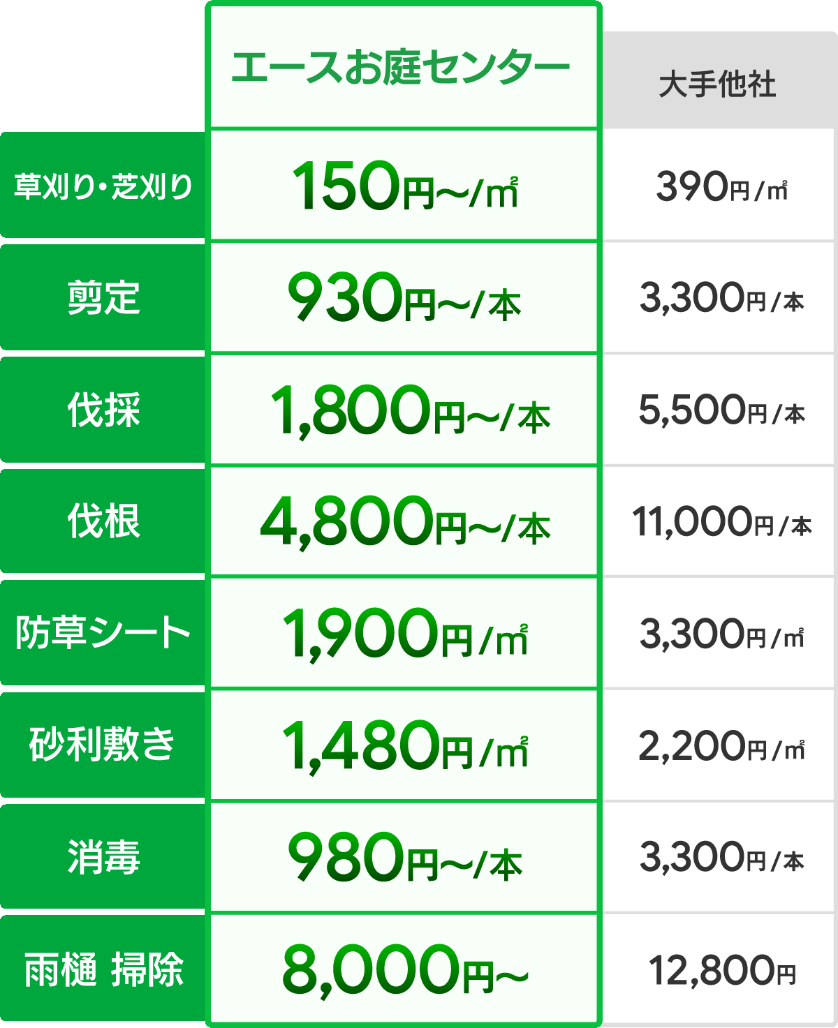 - Aエースお庭センターのスタッフは、数多くの作業を行ってきております。安全を第一に考え、作業させていただきますのでご安心ください。